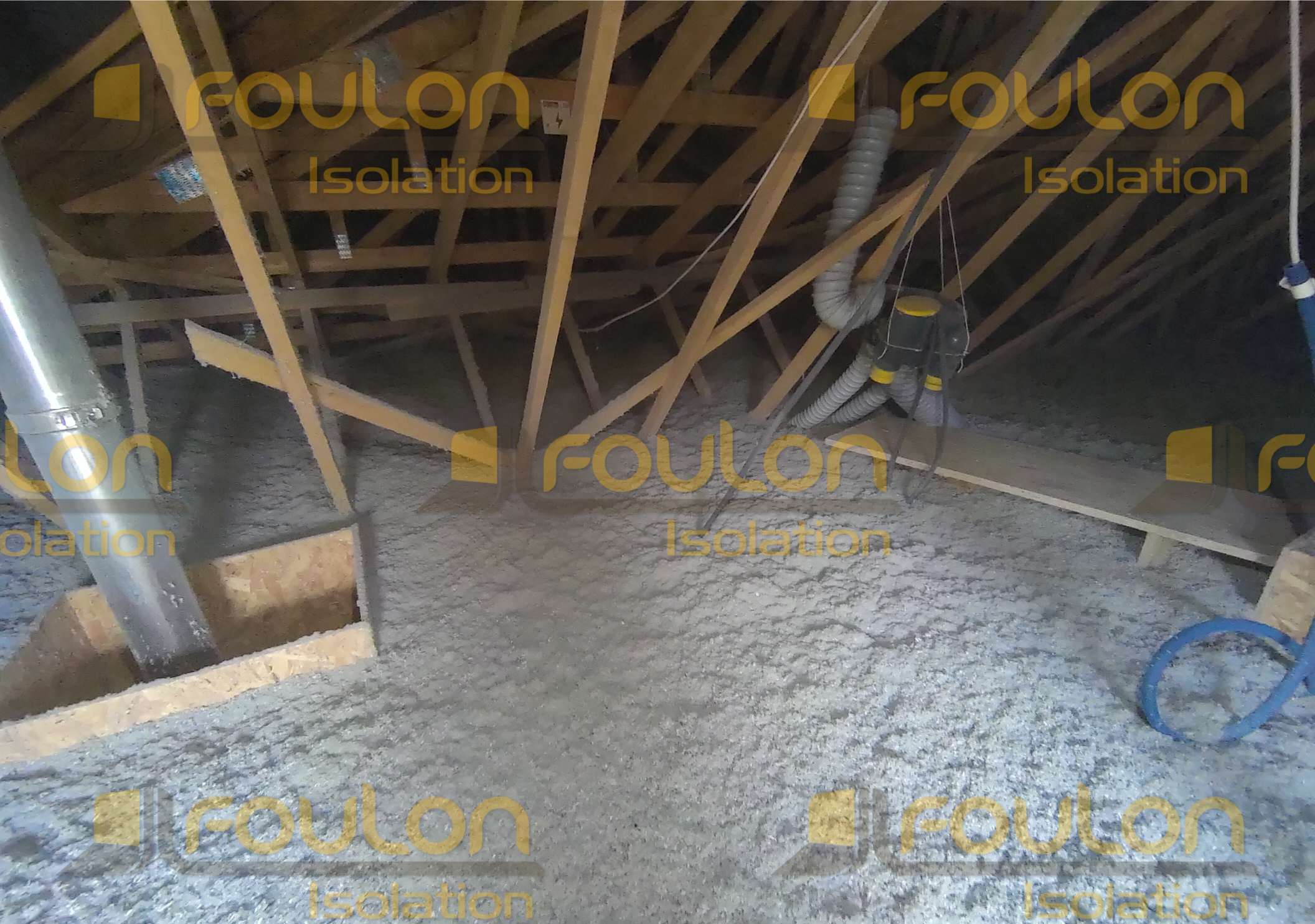 Les caractéristiques : une conductivité thermique de 0,040 W/(m.K) – une résistance thermique de 2 à 11 m² K/W – un classement de réaction au feu M1 – une excellente capacité de déphasage thermique pour un meilleur confort en été – une composition à 90% de papiers journaux recyclés – une insufflation dans les parois verticales – une résistance efficace au développement des moisissures – une épaisseur d’isolant de 355 mm pour un R = 7 m²K/W (280 mm après tassement).