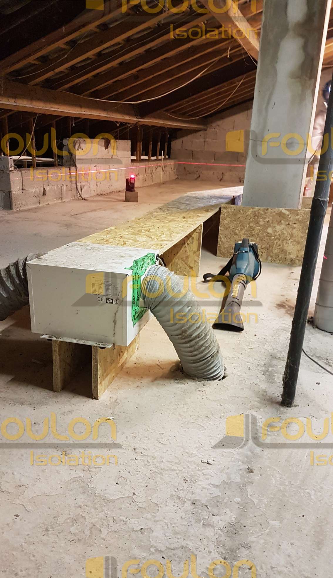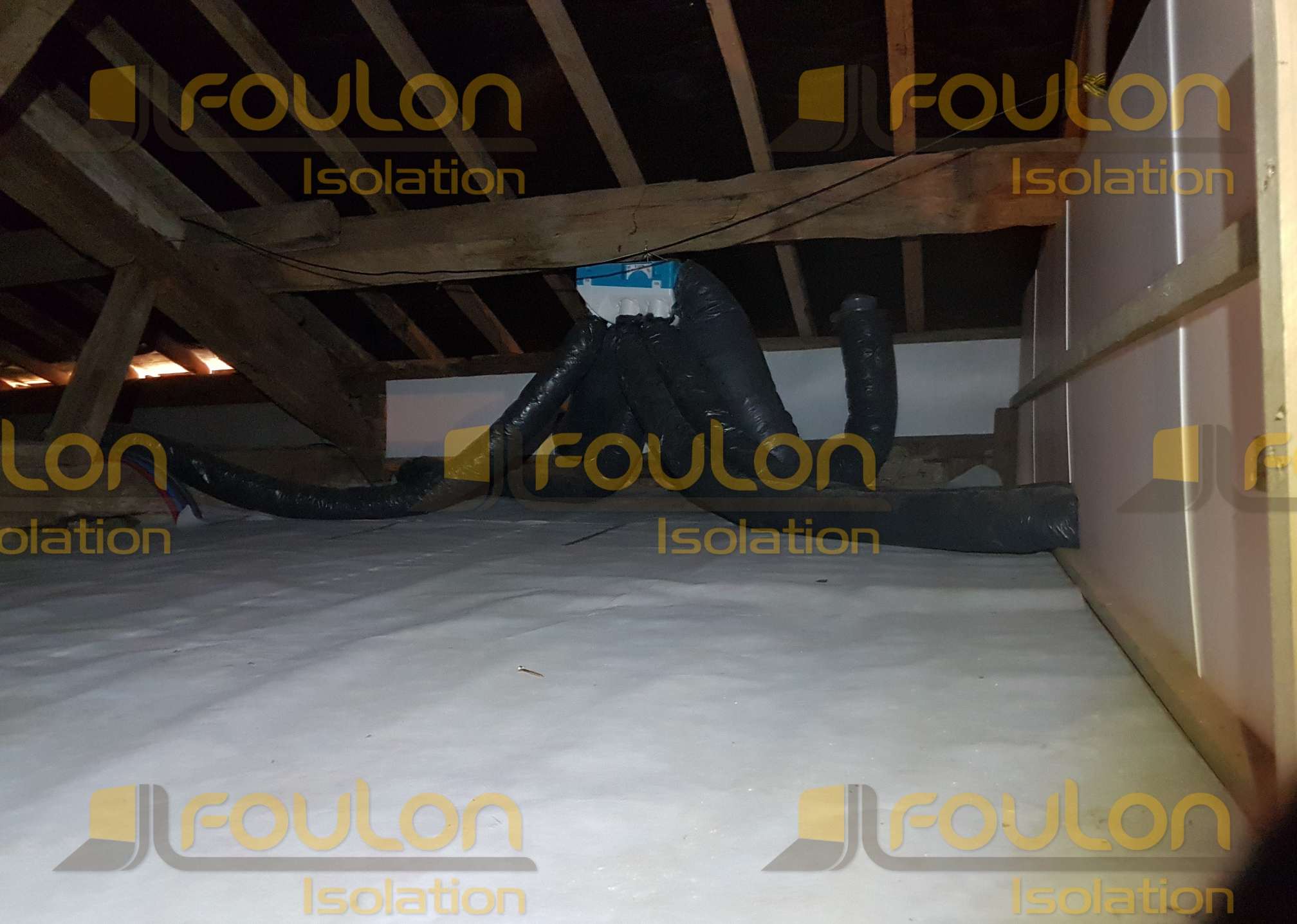 Les caractéristiques : une conductivité thermique de 0,046 W/(m.K) – une résistance thermique de 4 à 14 m² K/W – un classement de réaction au feu A1 – une perméabilité à la vapeur d’eau MU1 – une composition à partir de sable et de 40% de verre recyclé, recyclable à 100 % – une laine minérale incombustible et imputrescible, sans aucun produit de traitement – un faible poids rapporté sur le plafond (pour des résistances thermiques très élevées) – une bonne tenue en cas de vent fort – un faible tassement du produit – une épaisseur d’isolant de 330 mm pour un R = 7 m²K/W (322 mm après tassement).